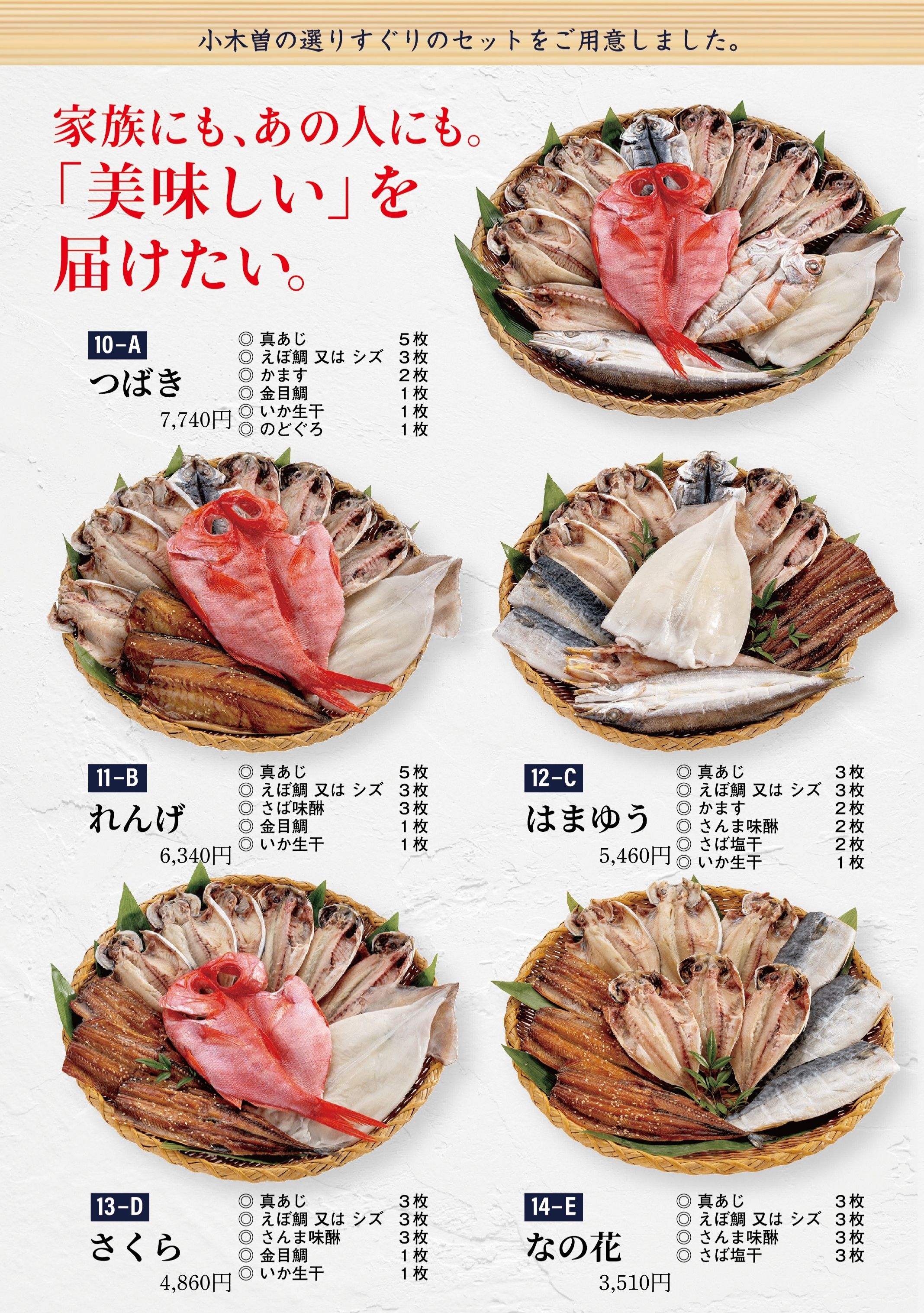皆様にご満足いただけるよう、美味しい干物を心を込めてご用意しております。